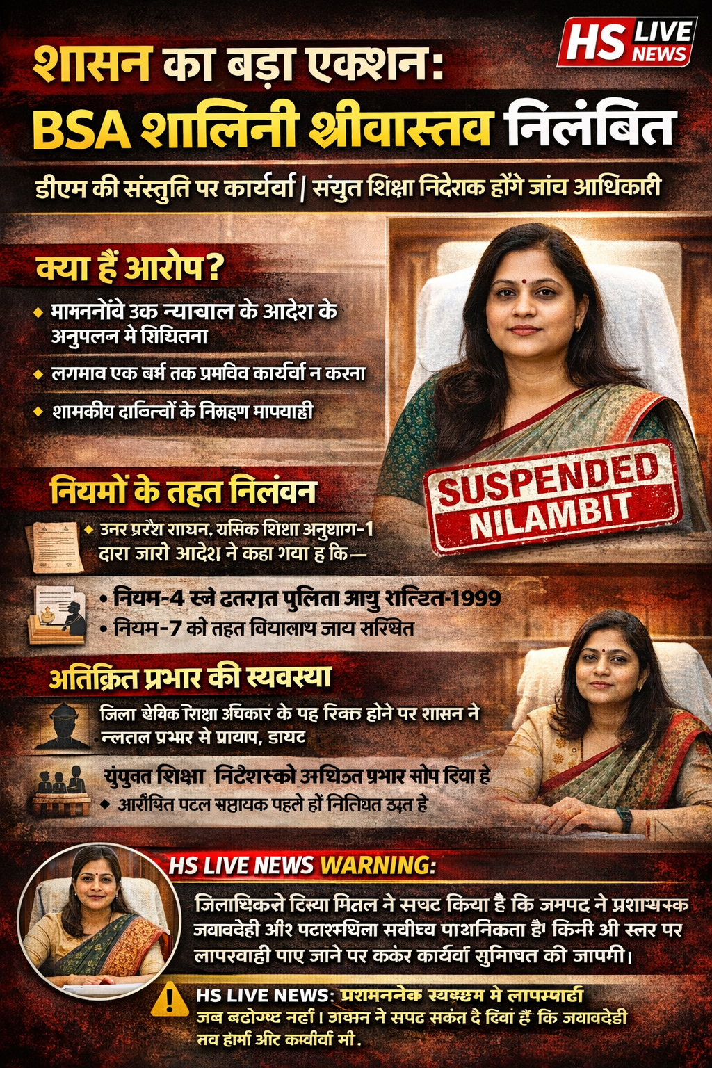 ⚡ शासन का बड़ा एक्शन: BSA शालिनी श्रीवास्तव निलंबित