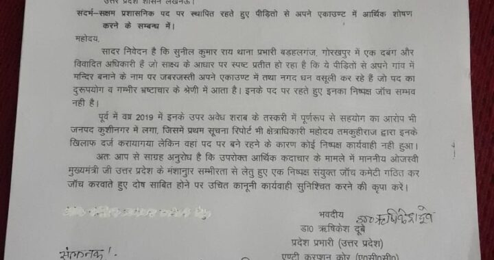 एसीसी ने यह भी आरोप लगाया कि उत्तर प्रदेश के माननीय मुख्यमंत्री की भ्रष्टाचार मुक्त और पारदर्शी शासन की मंशा को रुद्रपुर तहसील के कुछ जिम्मेदार अधिकारी अपनी कार्यशैली से ध्वस्त कर रहे हैं।